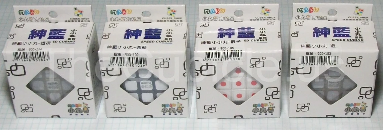 The Maru Mini 3x3 is available in a variety of colors, including transparent and glow-in-the-dark. The "Dice" color features fancy dice patterns across the cube in place of the colors.