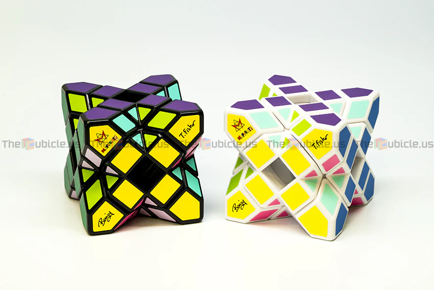 The Meffert's Void Skewb Xtreme is a hollowed out shape-mod of a skewb in which each face has been modified so as to resemble an "X". It features high-quality, textured fluorescent vinyl stickers.