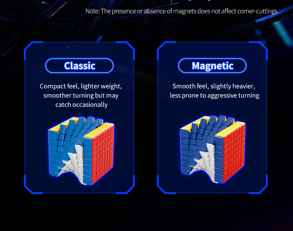 The MFJS MeiLong 7x7 V2 M (PiCube Core-Magnetic) is a fully-featured 7x7 designed for elite speedcubers and avid collectors. Crafted by the renowned MoYu sub-brand MFJS, this release combines high-performance engineering with unbeatable value. What sets this edition apart is its exclusive PiCube core-magnetization: powerful core magnets work alongside the traditional edge and corner magnets to deliver unmatched stability and controllability, even through the fastest turns and toughest solves.