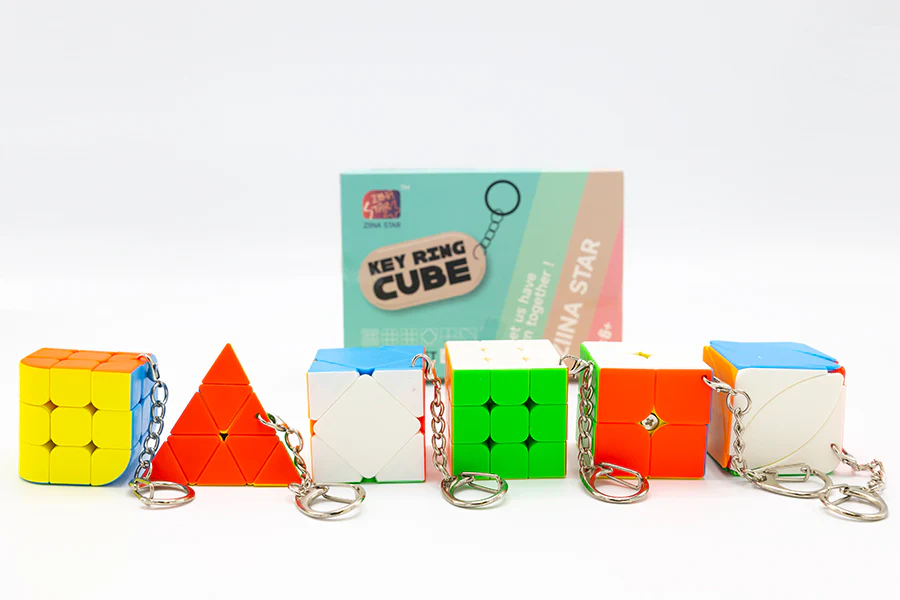 The Ziina Keychain Cube Mini Gift Box (Set A) has a 2x2, 3x3, pyraminx, Penrose cube, Ivy cube, and a skewb. They all come with removable keychain attachments and make a great gift for the cuber in your life!